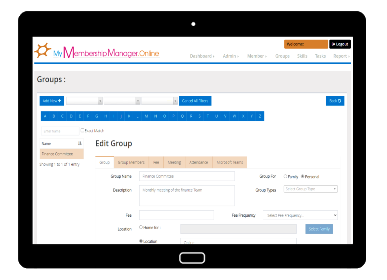 - Manage groups, meetings (face to face and online) and attendance with ease